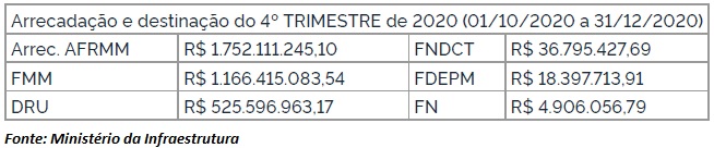 Os terminais privados movimentaram 627 milhões de toneladas, registrando um crescimento de 3,18%. Os portos públicos operaram 326,6 milhões de toneladas, perfazendo um incremento de movimentação de 4,54% em relação a igual período de 2019.