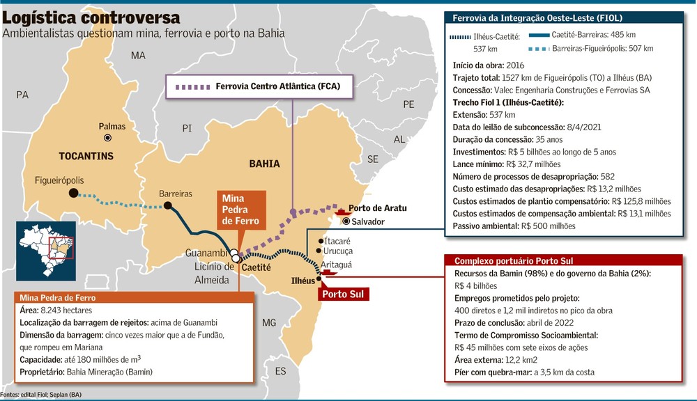 Com licitação conduzida a toque de caixa pelo governo Jair Bolsonaro, o primeiro trecho da Ferrovia de Integração Oeste-Leste (Fiol) terá como usuário quase exclusivo a Bahia Mineração S.A (Bamin). A ela pertence a mina Pedra de Ferro e projeto de terminal portuário para escoar o minério, operações que geram reação da população local e ambientalistas.